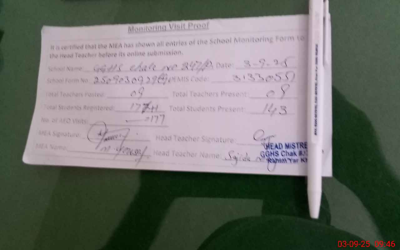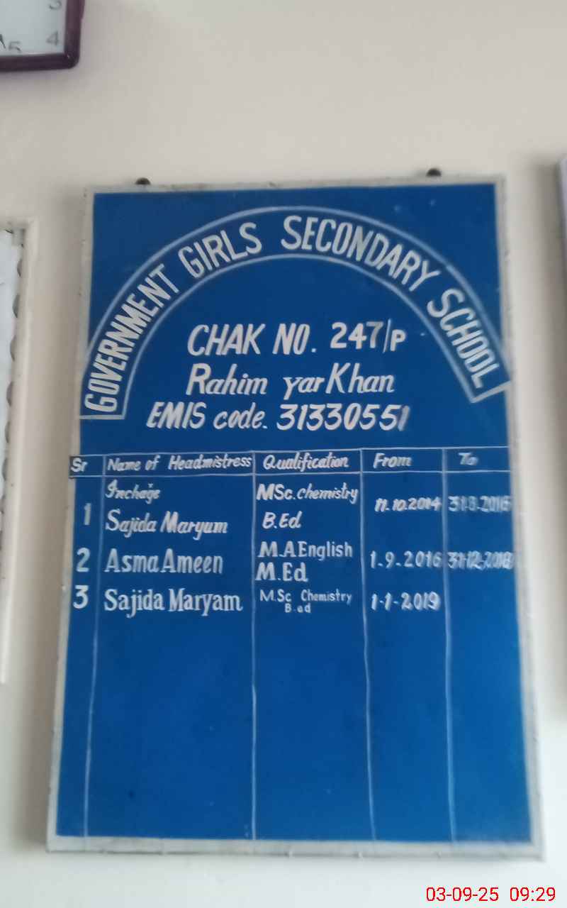 | EMIS Code: 31330551 | Name of School: GGHS CHAK NO. 247/P | |||