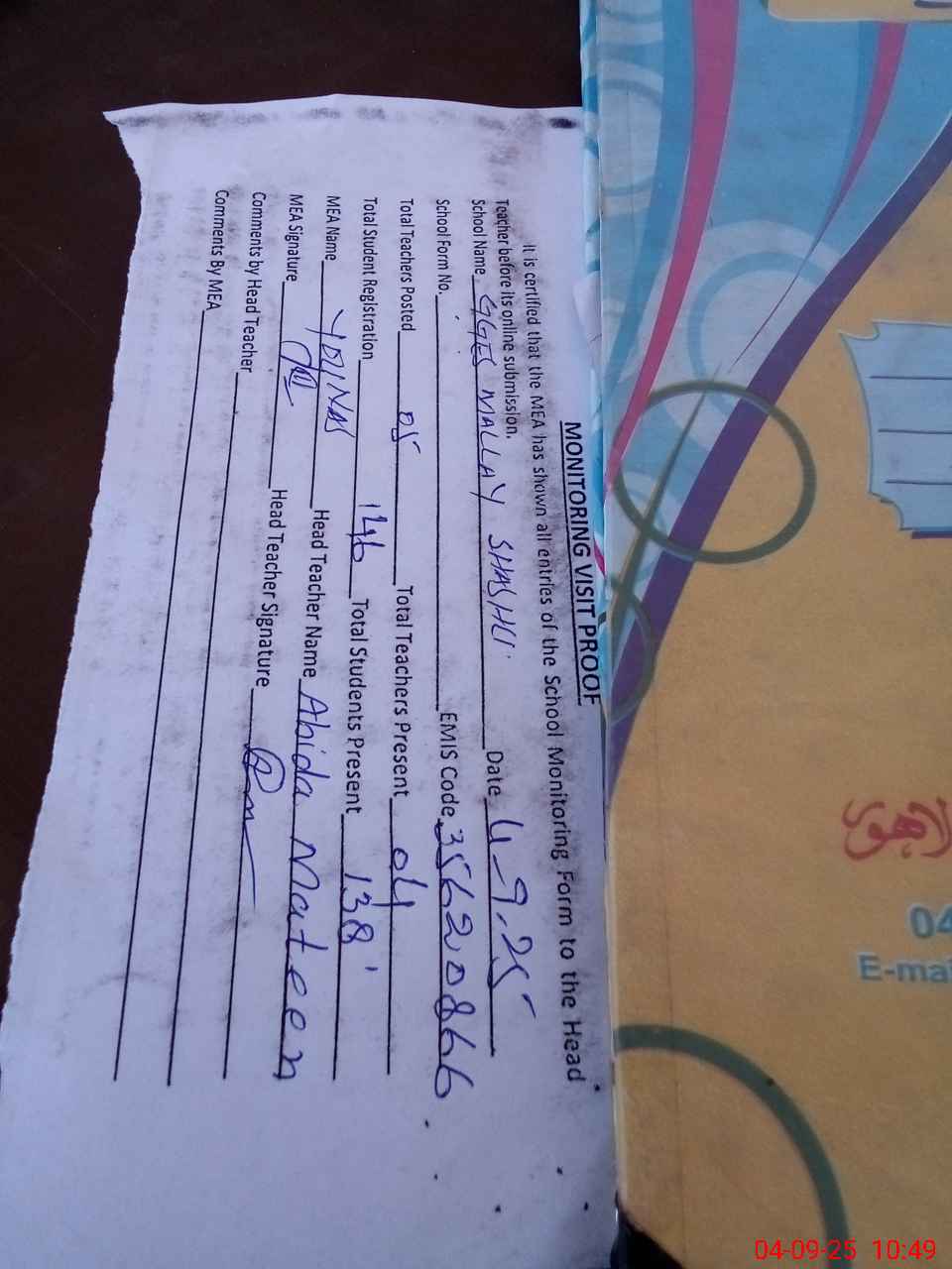 | EMIS Code: 35620866 | Name of School: GGES MALLAH SHAHU | |||