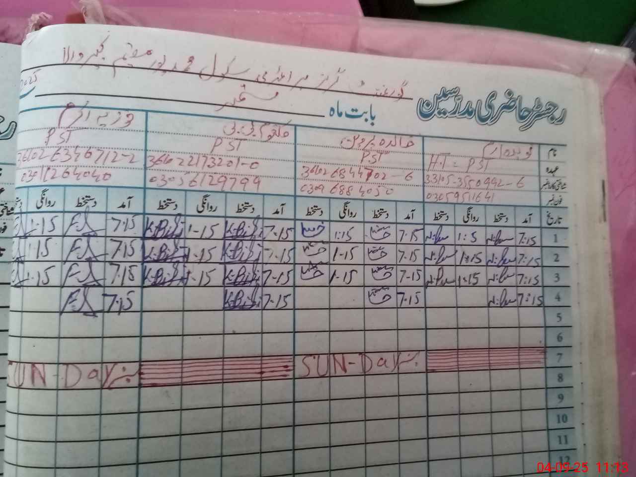 | Name: Na**** Ir**** Designation: (School Headmaster's/Headmistress's) PST Phone/Cell Number: 03**** |
