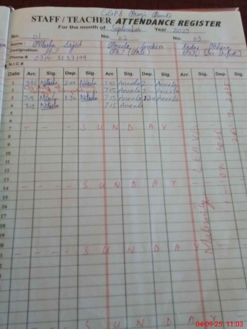| Name: Ni**** Sa**** Designation: (School Headmaster's/Headmistress's) PST Phone/Cell Number: 03**** |