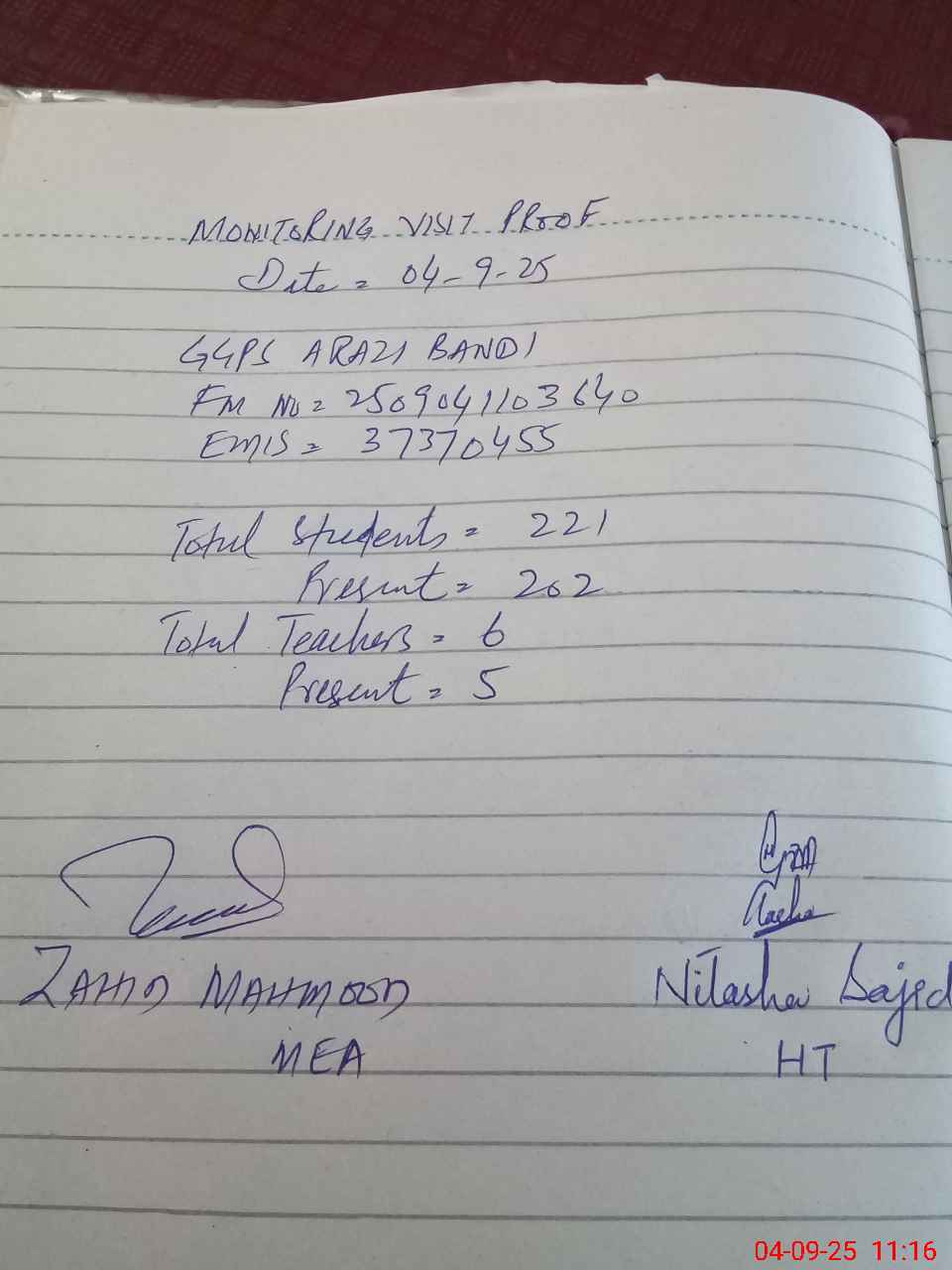 | EMIS Code: 37370455 | Name of School: GGPS ARAZI BANDI | |||