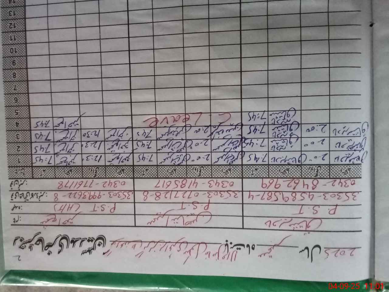 | Leave | Duty | Absent | Maternity | Medical | Ex- Pak |