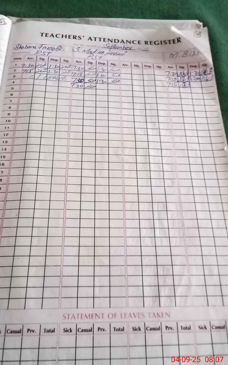 | Name: SH**** FA**** Designation: (School Headmaster's/Headmistress's) PST Phone/Cell Number: 03**** |
