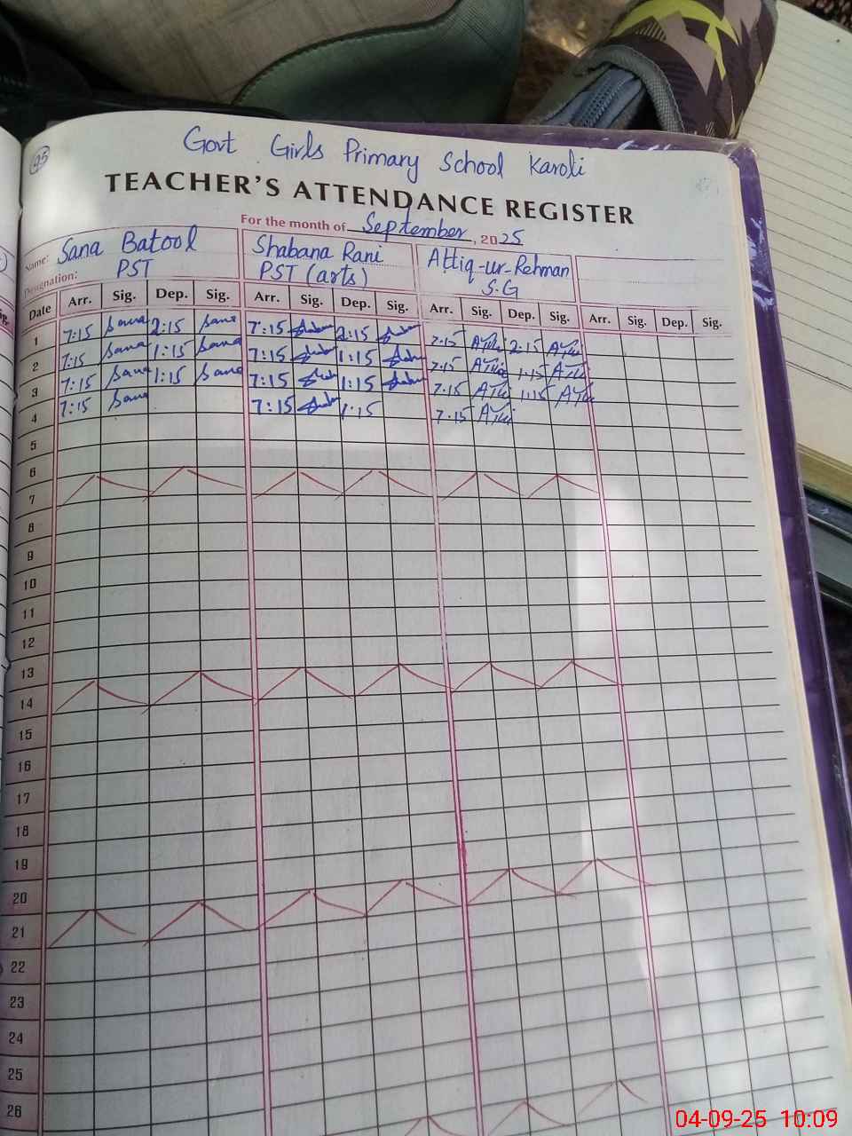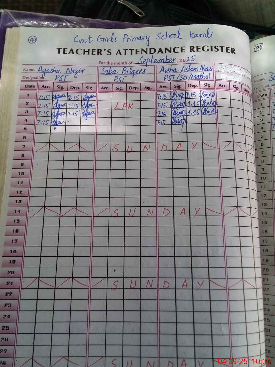| Monitoring Date: 04-09-2025 | Start Time: 04-09-2025 09:38 AM | End Time: 04-09-2025 10:16 AM | Name of MEA: Kh**** Ri**** | |