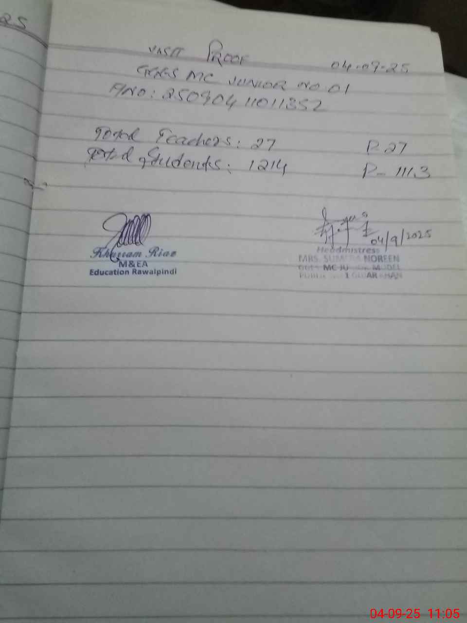| Name: GH**** AKA**** Designation: (School Headmaster's/Headmistress's) SST Phone/Cell Number: 03**** |