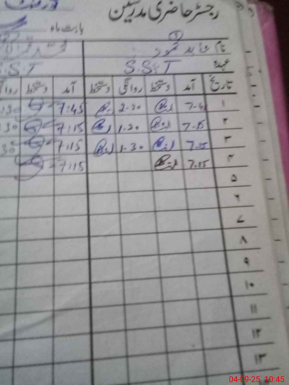 | CNIC | Full Name | Designation | R/C | Absence During Last Calender Month |
