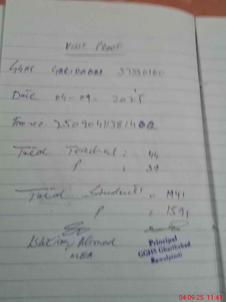 | EMIS Code: 37330100 | Name of School: GGHS GHAREEB ABAD | |||