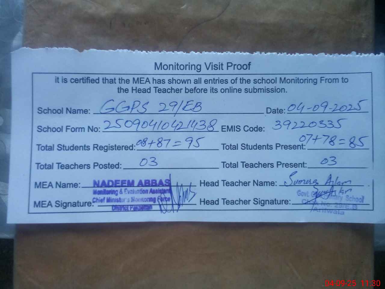 | EMIS Code: 39220335 | Name of School: GGPS 29 EB P.O. 19 EB | |||