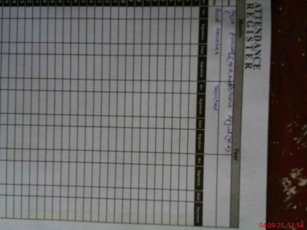 | Attendance Register | Head Teacher | MEA with School | Visit Proof |
