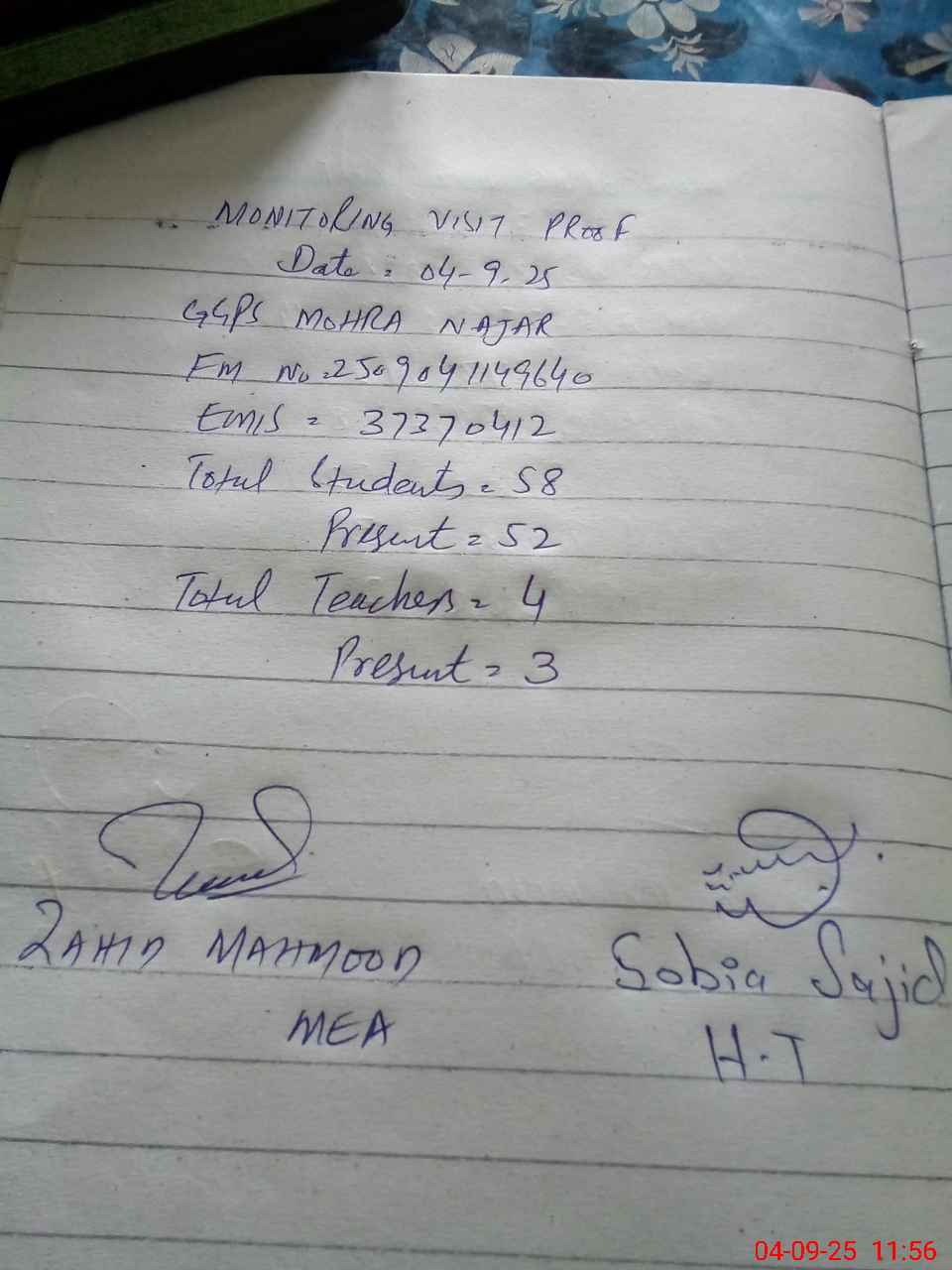 | EMIS Code: 37370412 | Name of School: GGPS MOHRA NAJAR | |||