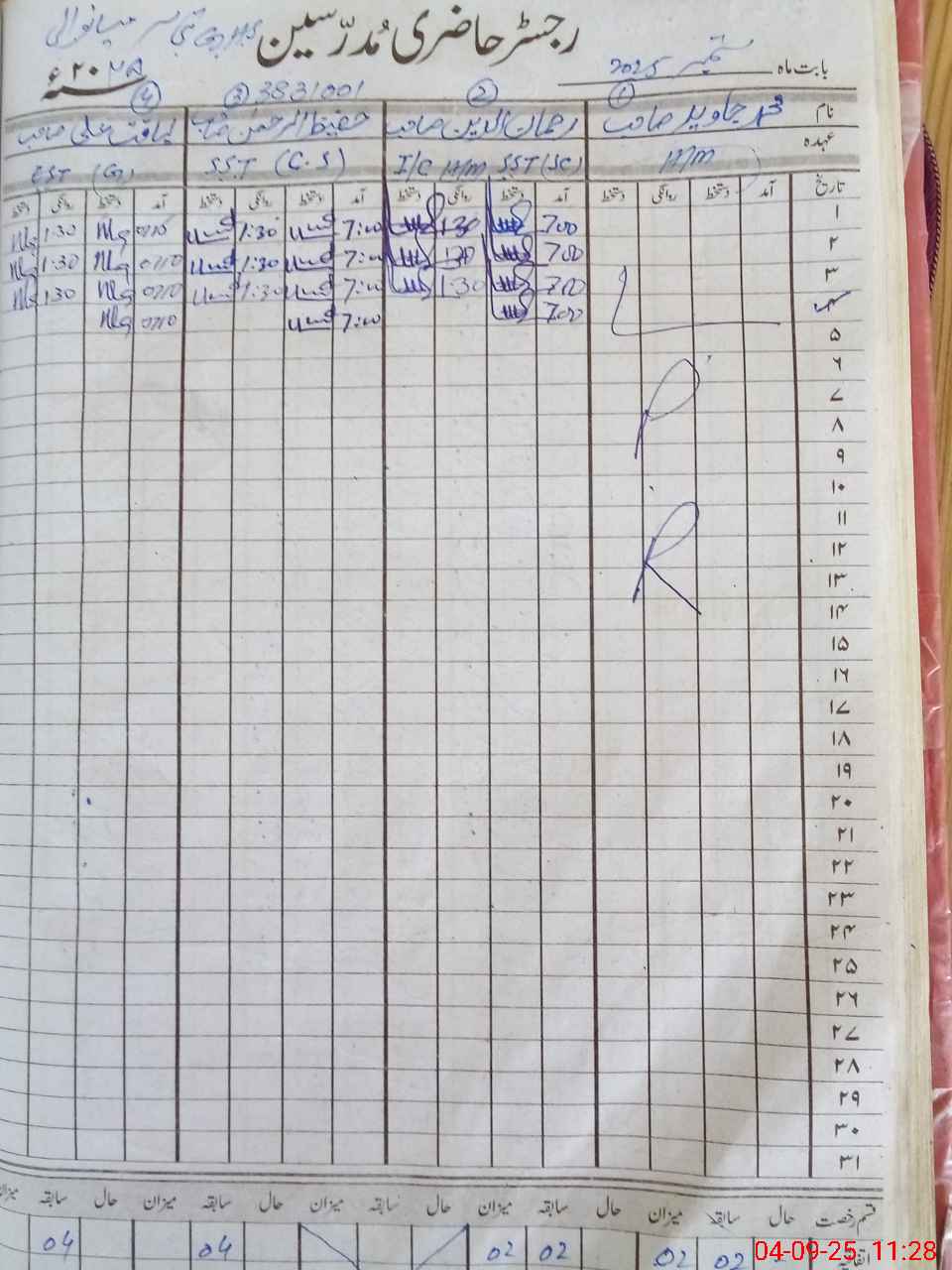 | CNIC | Full Name | Designation | R/C | Absence During Last Calender Month |