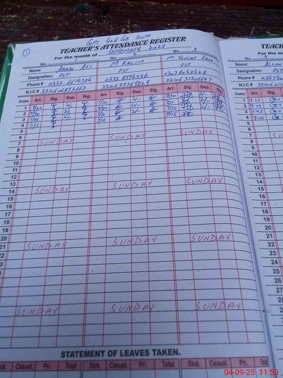 | Name: AB**** AL**** Designation: (School Headmaster's/Headmistress's) PST Phone/Cell Number: 03**** |