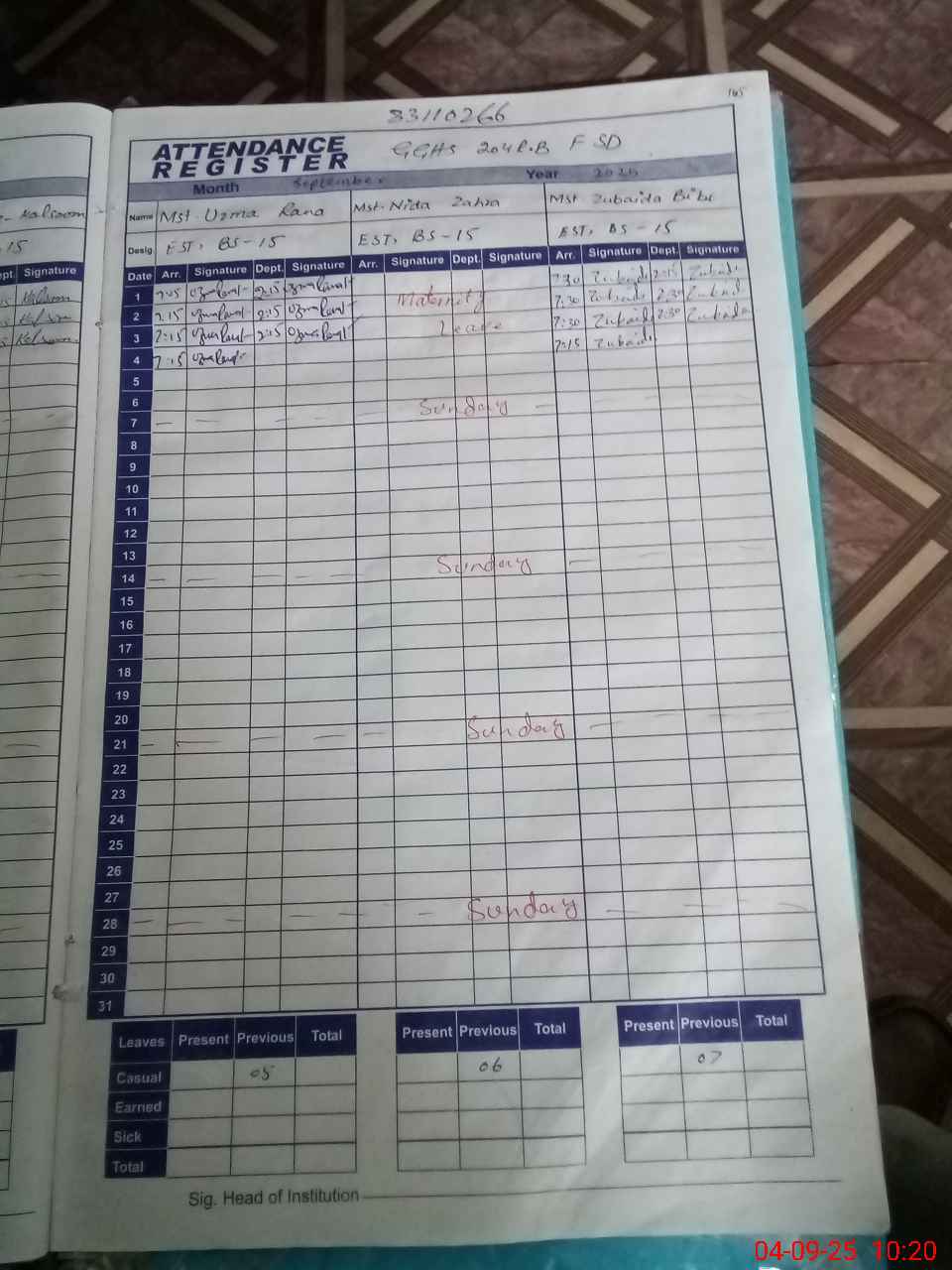 | 33**** | Ma**** Sh**** | PST | Temporary | 0 | 0 | 0 | 0 | 0 | 0 | 0 | 0 | 0 | Maternity |