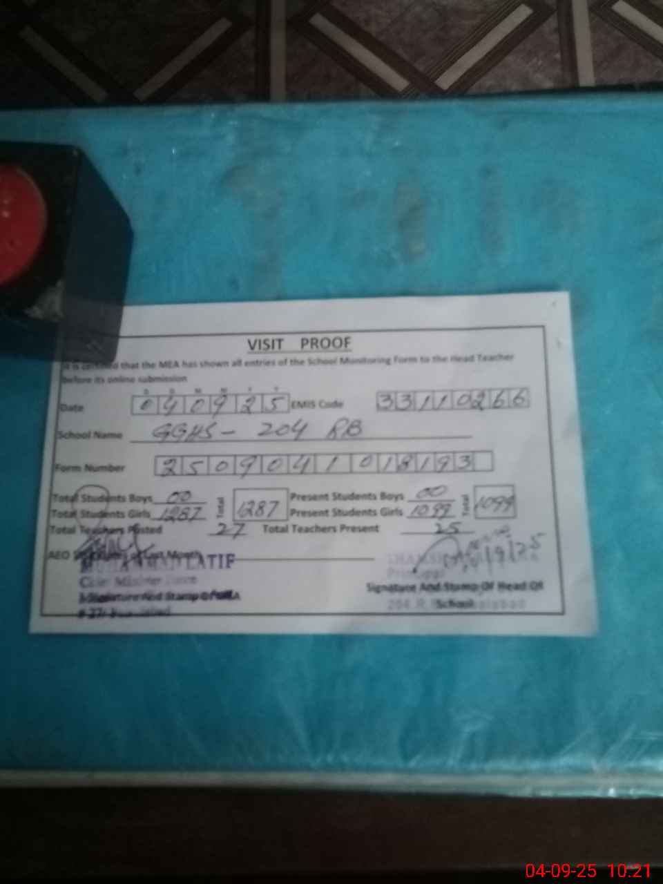 | EMIS Code: 33110266 | Name of School: GGHS CHAK NO 204 RB | |||