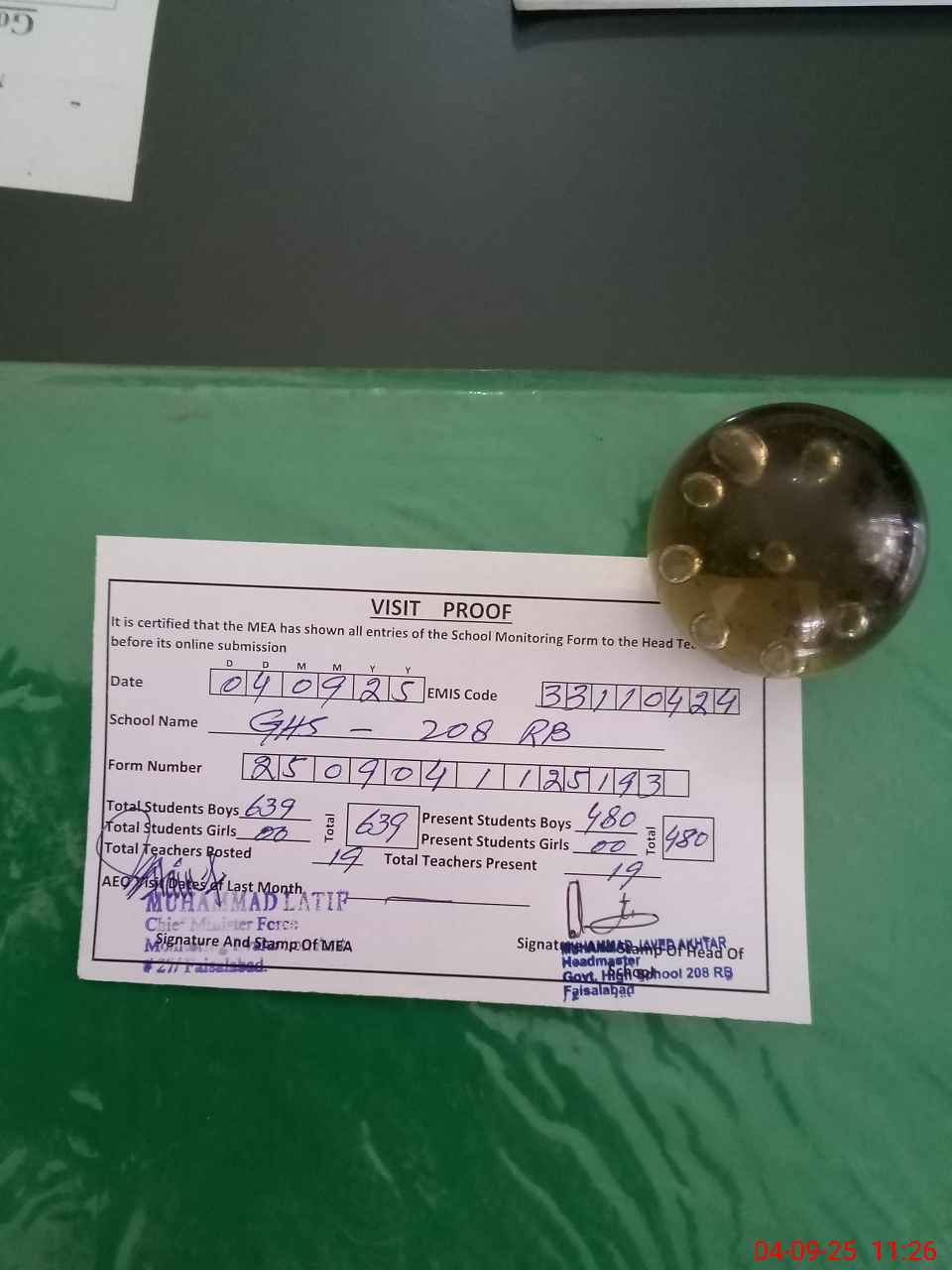 | EMIS Code: 33110424 | Name of School: GHS 208 RB | |||