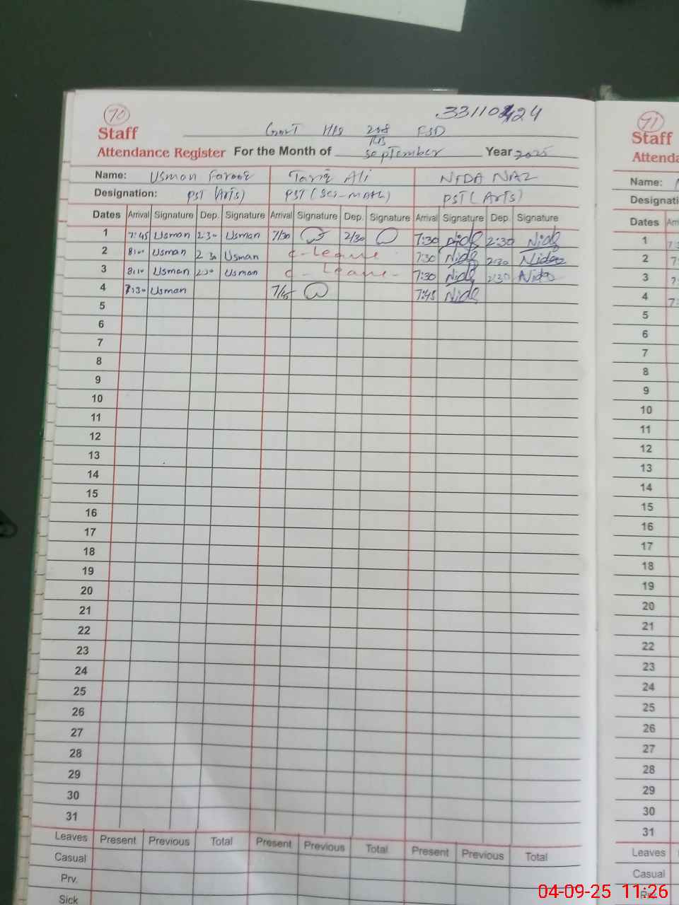 | Leave | Duty | Absent | Maternity | Medical | Ex- Pak |