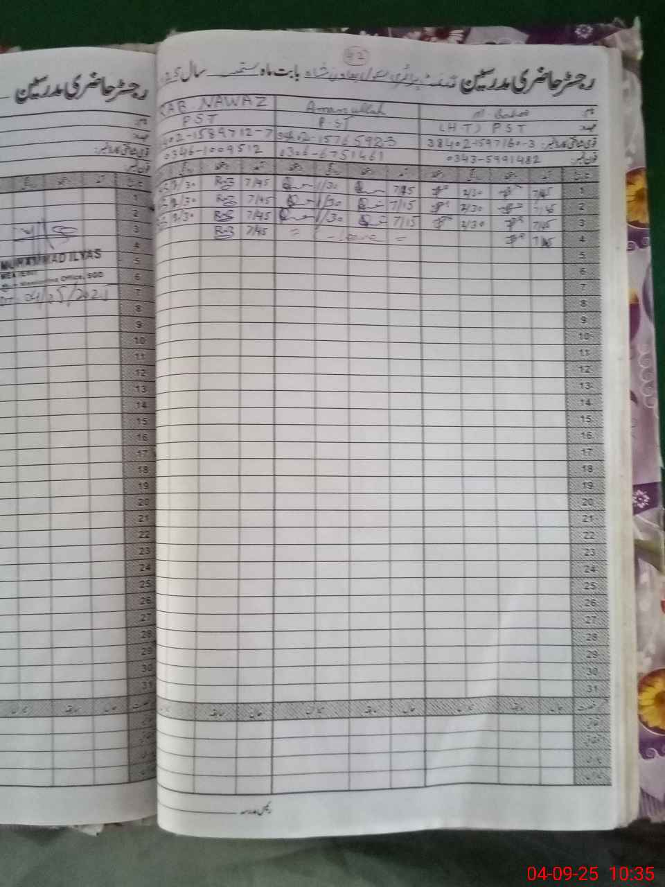 | Name: Mu**** Ba**** Designation: (School Headmaster's/Headmistress's) E S E S M Phone/Cell Number: 03**** |