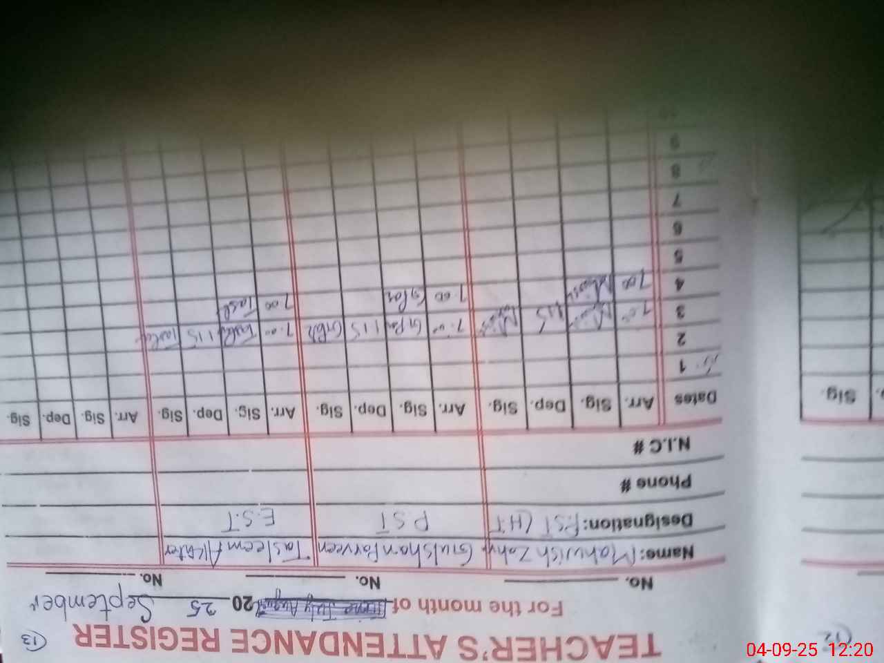 | Name: MA**** ZA**** Designation: (School Headmaster's/Headmistress's) PST Sci Phone/Cell Number: 03**** |