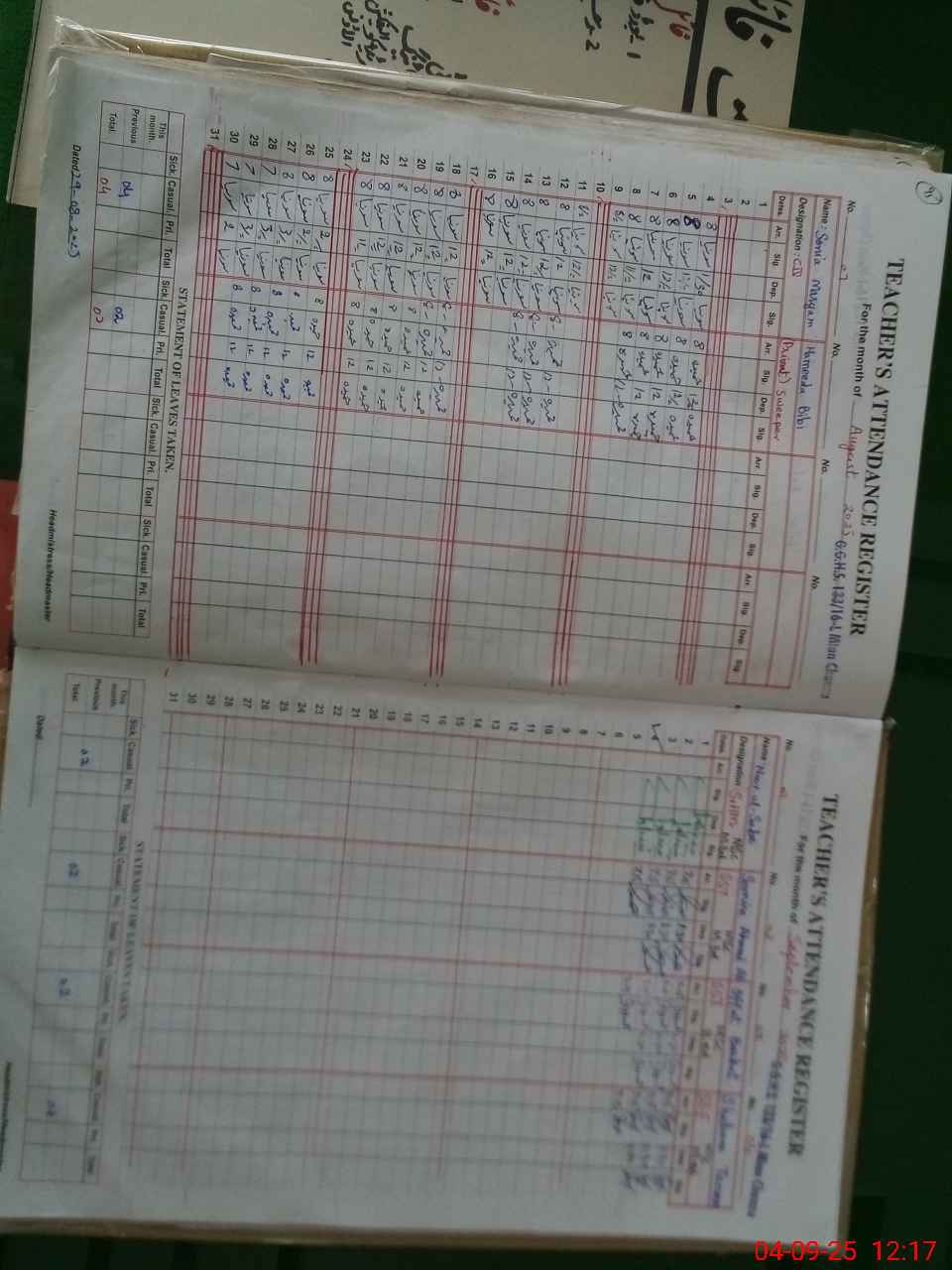 | CNIC | Full Name | Designation | R/C | Absence During Last Calender Month |