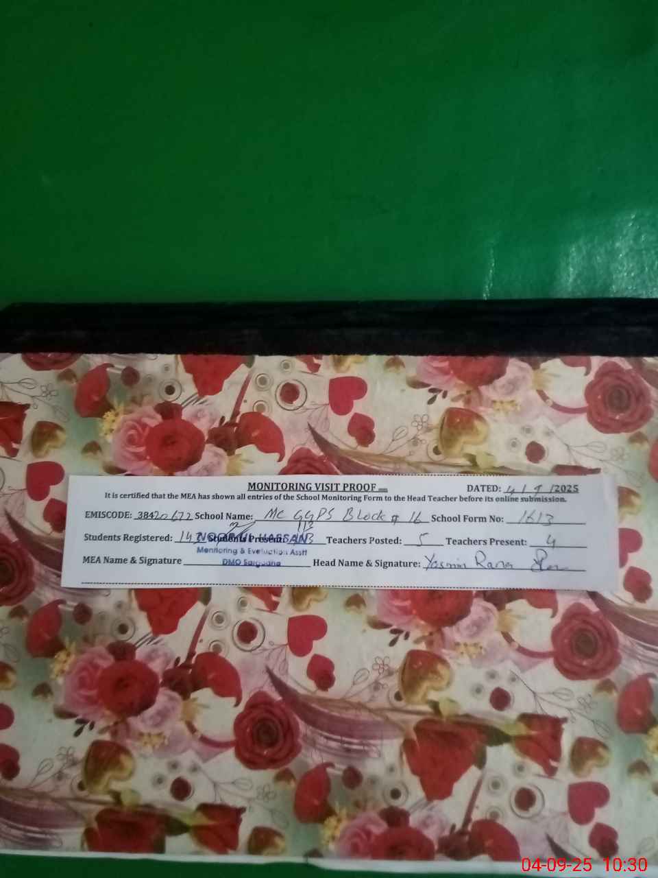 | EMIS Code: 38420672 | Name of School: GGPS MC BLOCK NO.16 SARGODHA | |||