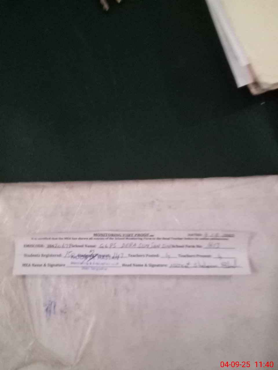 | Attendance Register | Head Teacher | MEA with School | Visit Proof |