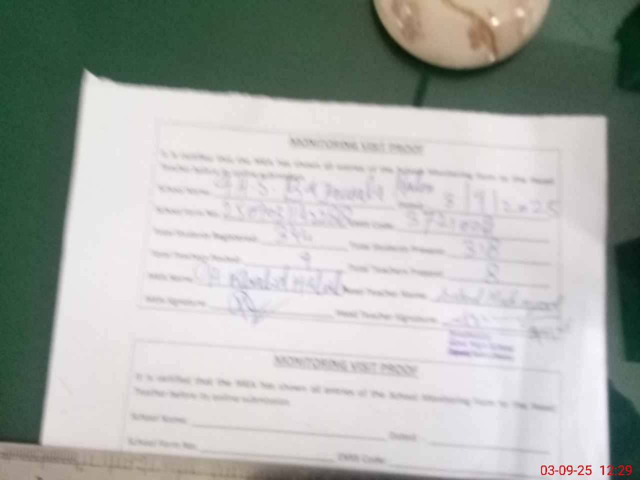 | Monitoring Date: 03-09-2025 | Start Time: 03-09-2025 11:41 AM | End Time: 03-09-2025 12:30 PM | Name of MEA: Kh**** ha**** | |
