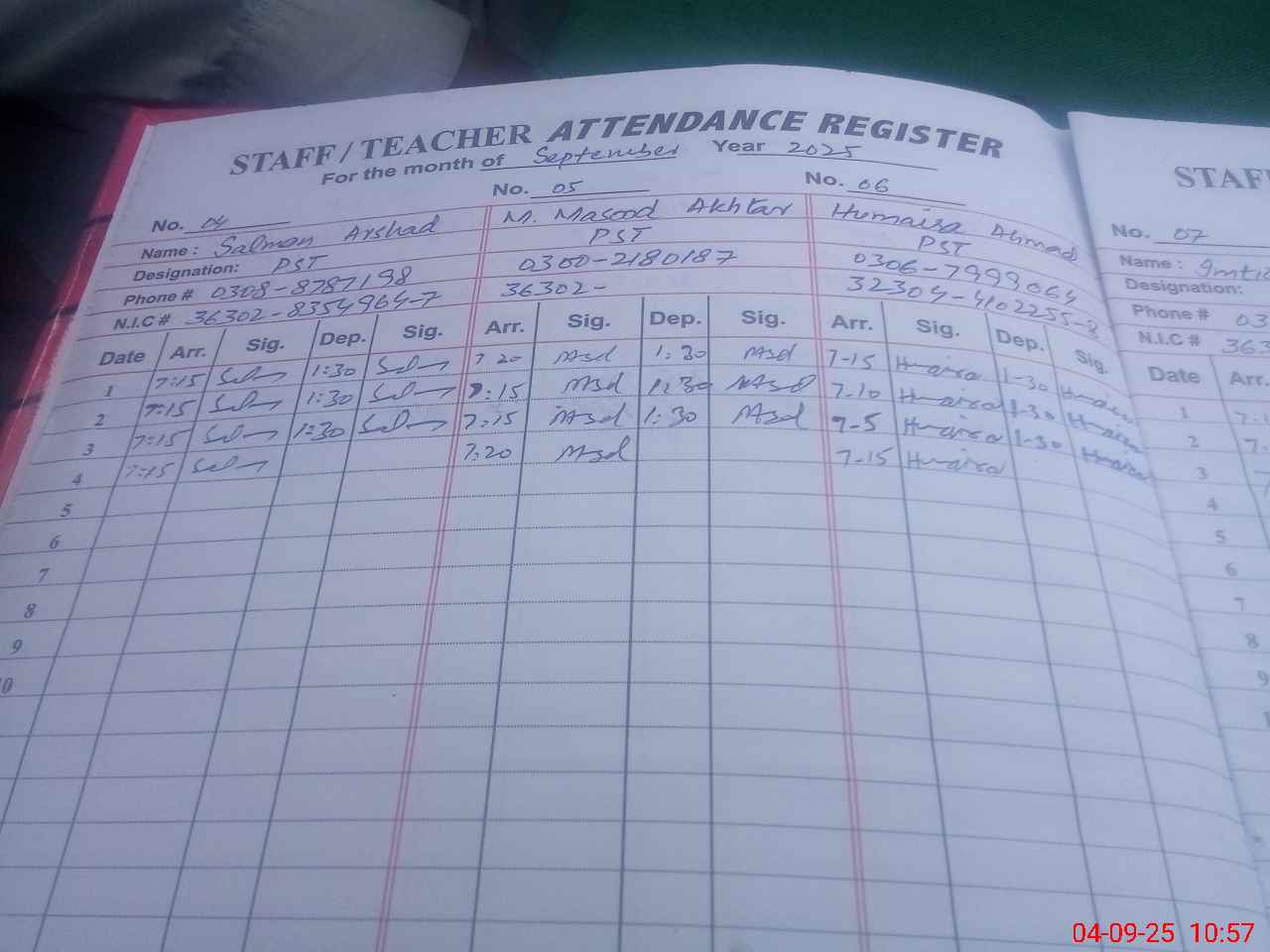 | Name: Mu**** Na**** Designation: (School Headmaster's/Headmistress's) PST/PTC/JV Phone/Cell Number: 03**** |