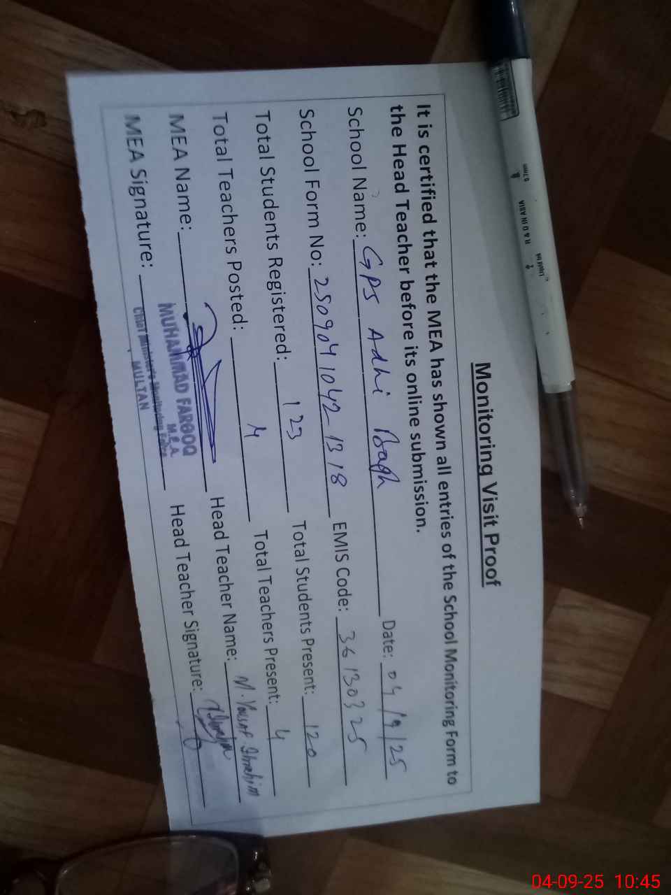 | EMIS Code: 36130325 | Name of School: GPS ADHI BAGH MOZA TARAGARH P/O KHOKHAR | |||