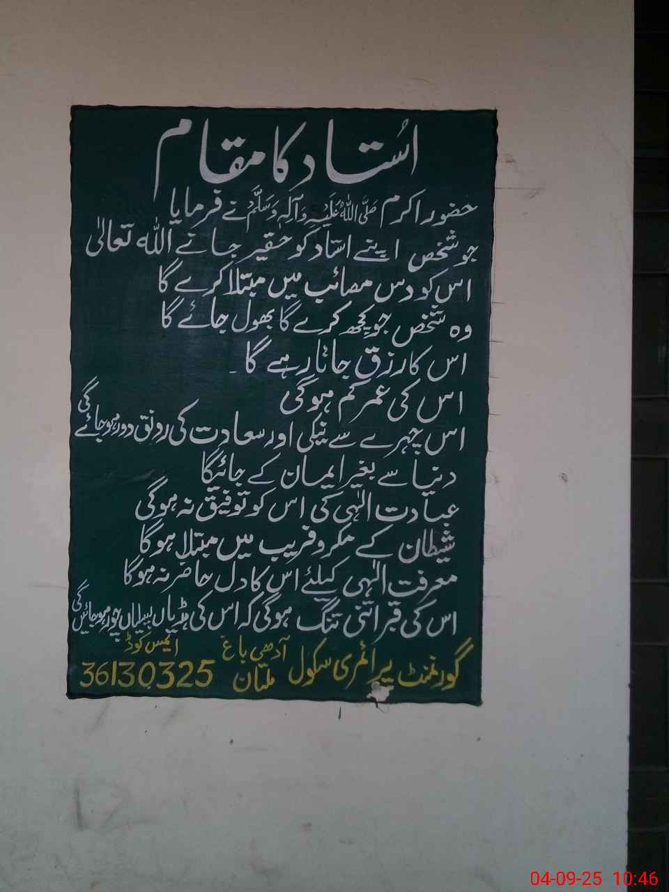 | District: MULTAN | Tehsil: MULTAN SADAR | Markaz: SHER SHAH - MALE | Level: Primary | |