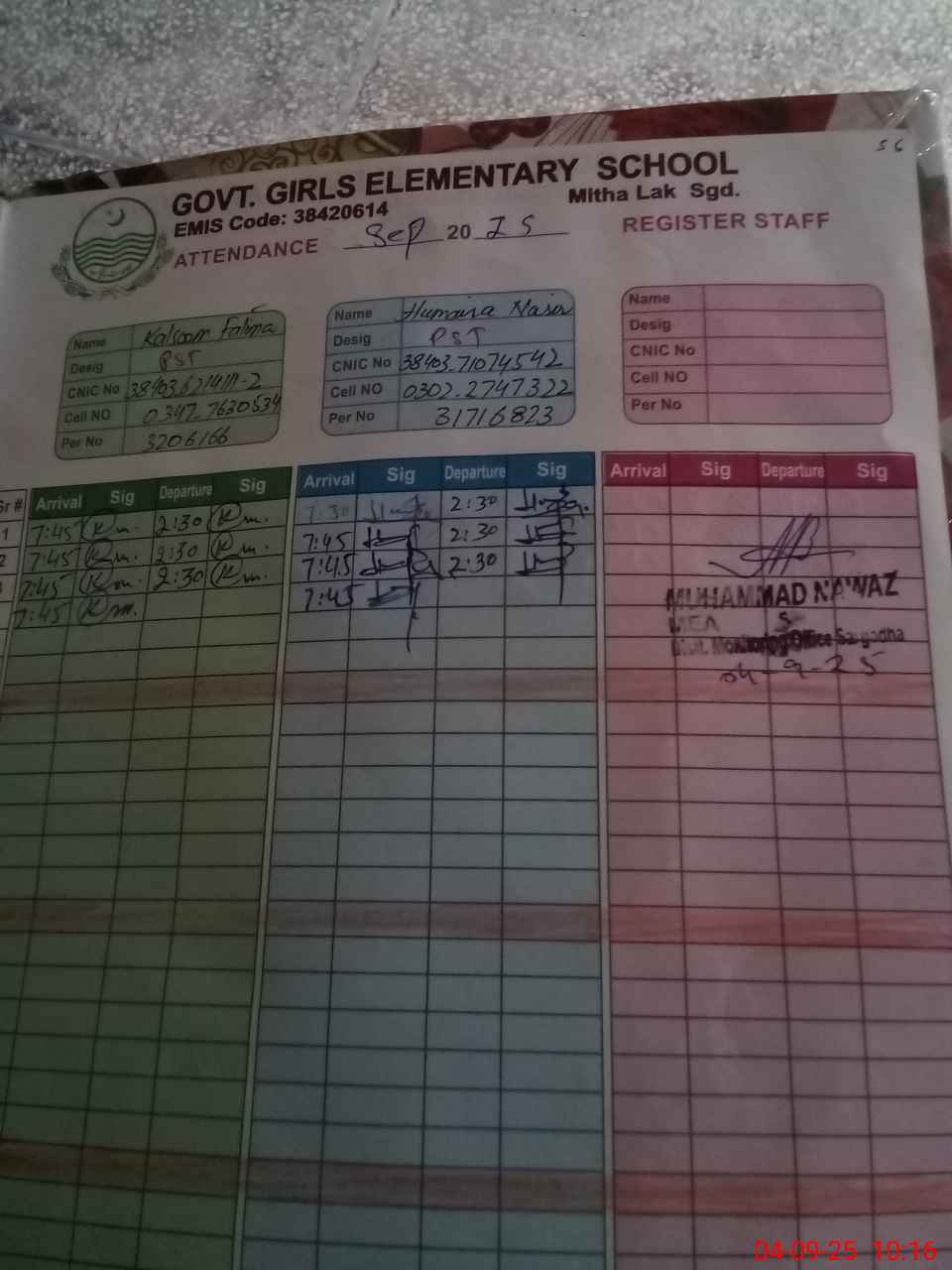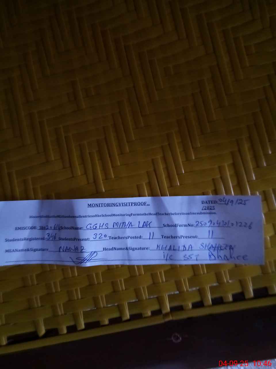 | EMIS Code: 38420614 | Name of School: GGHS MITHA LAK SARGODHA | |||