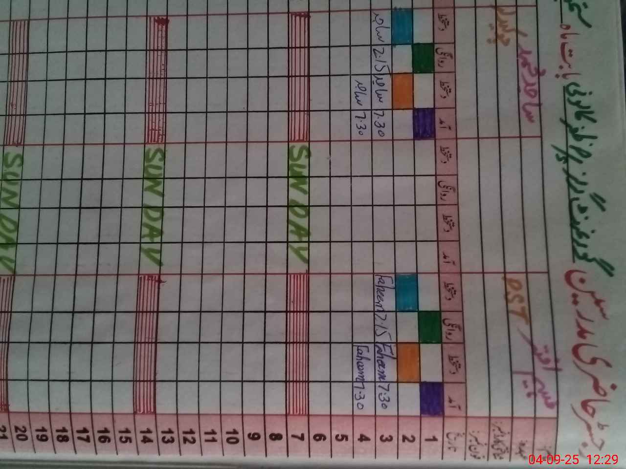 | CNIC | Full Name | Designation | R/C | Absence During Last Calender Month |