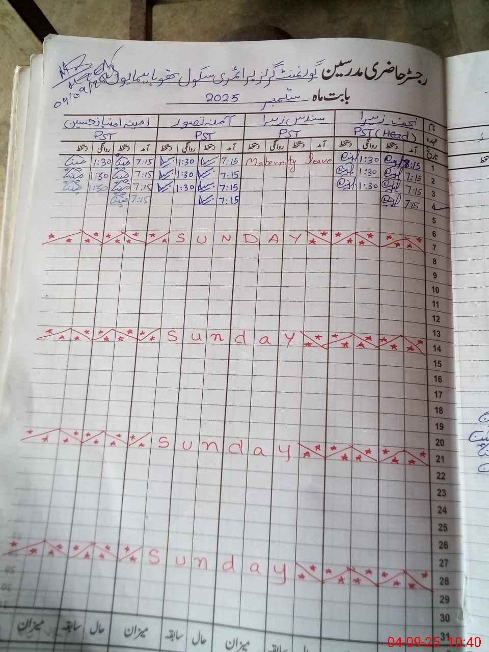| 37**** | Su**** Za**** | PST | Regular | 0 | 0 | 0 | 0 | 0 | 0 | 0 | 0 | 0 | Maternity |