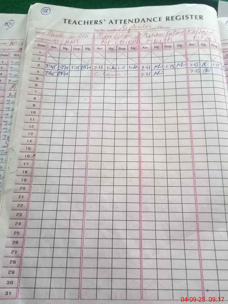 | 33**** | Si**** Qa**** | SST | Regular | 0 | 0 | 0 | 0 | 0 | 0 | 0 | 0 | 0 | Absent (Un-Authorized) |