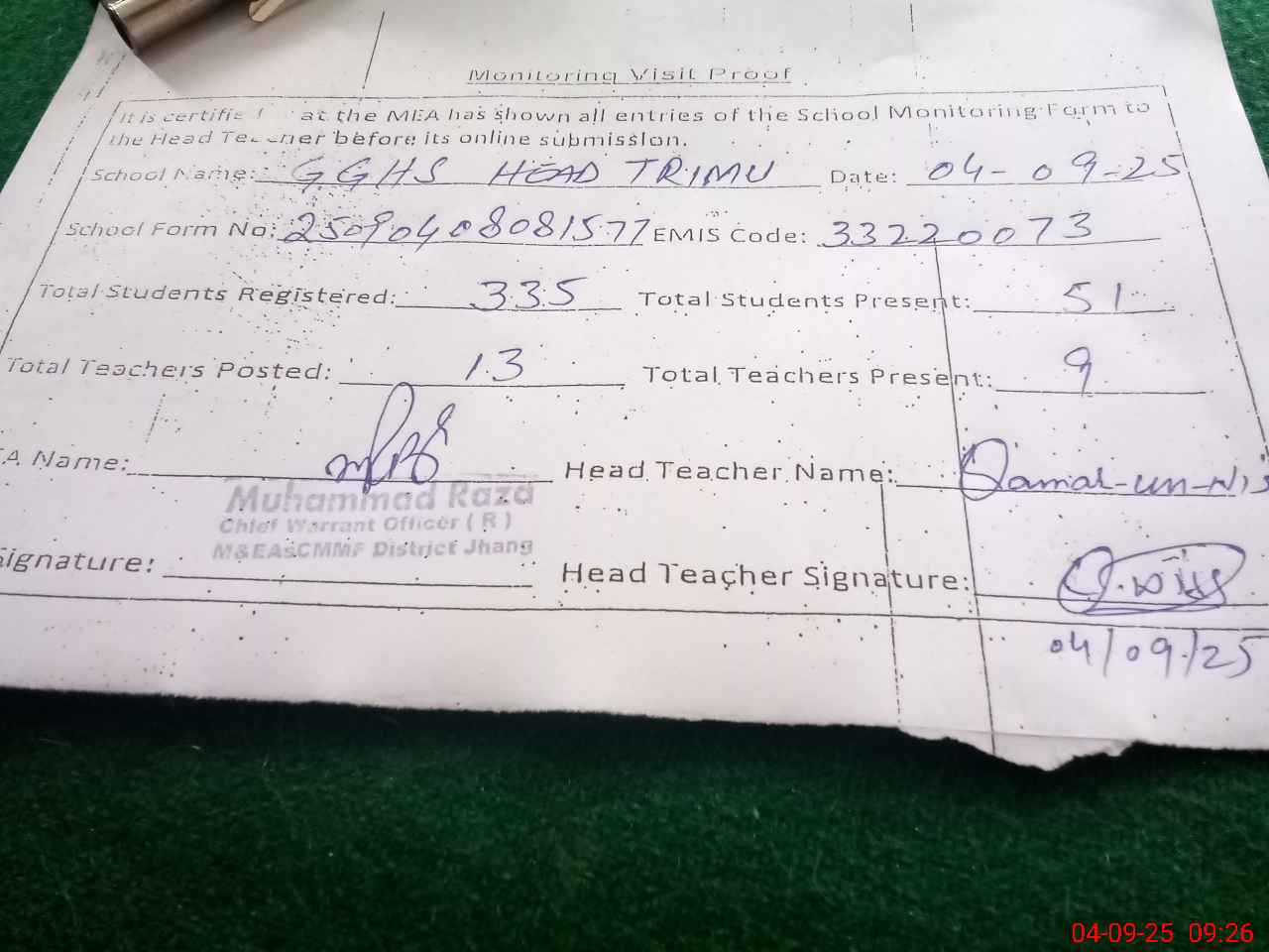 | Name: Qa**** UnNi**** Si**** Designation: (School Headmaster's/Headmistress's) In charge HEADMISTRESS Phone/Cell Number: 03**** |