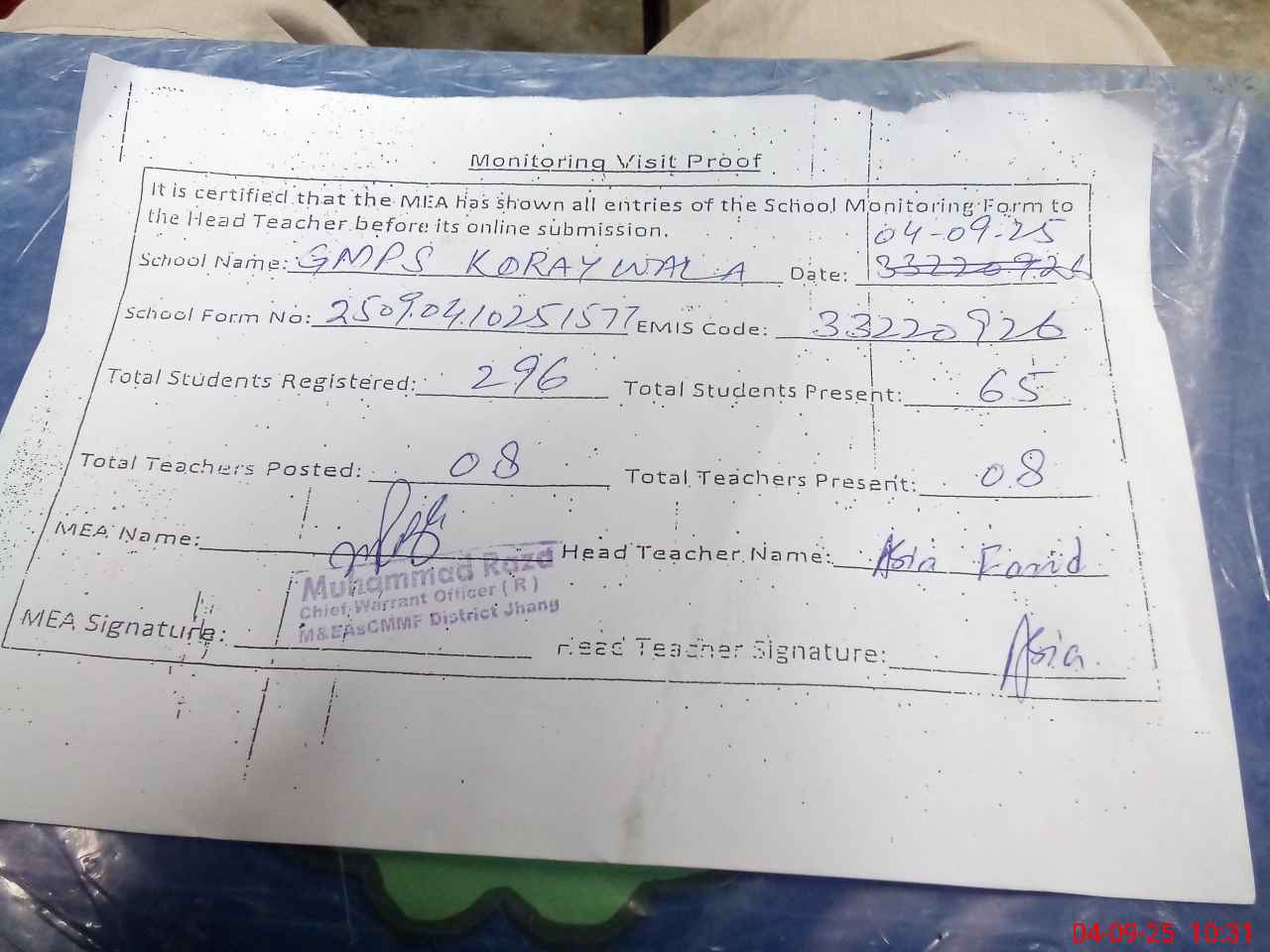 | EMIS Code: 33220926 | Name of School: GMPS KAURAY WALA | |||