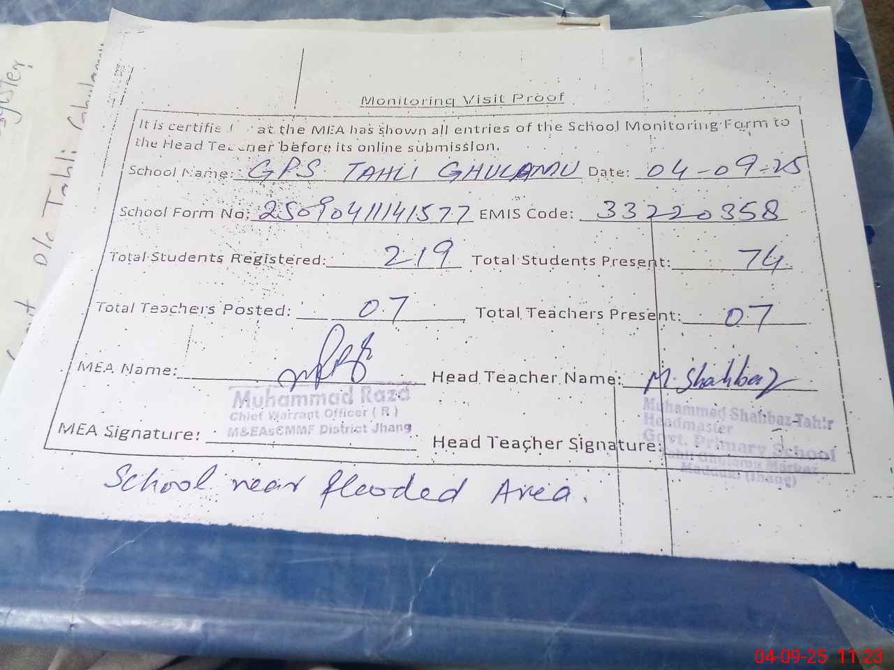 | EMIS Code: 33220358 | Name of School: GPS TAHLI GHULAMU | |||