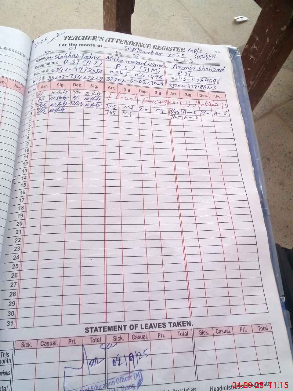 | Name: Mu**** Sh**** Ta**** Designation: (School Headmaster's/Headmistress's) PST Phone/Cell Number: 03**** |