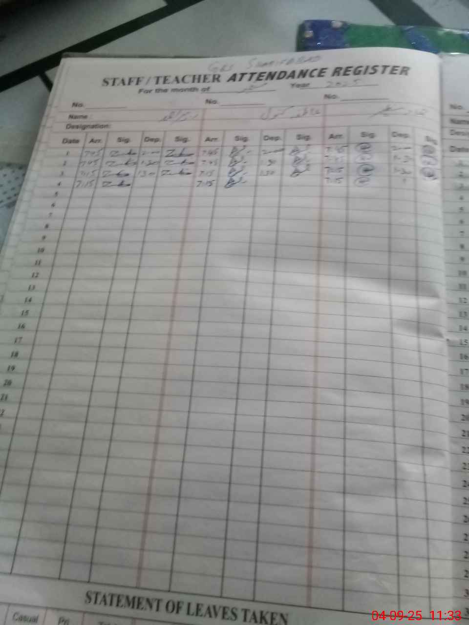| Name: Zu**** Ah**** Designation: (School Headmaster's/Headmistress's) EST (G) Phone/Cell Number: 03**** |