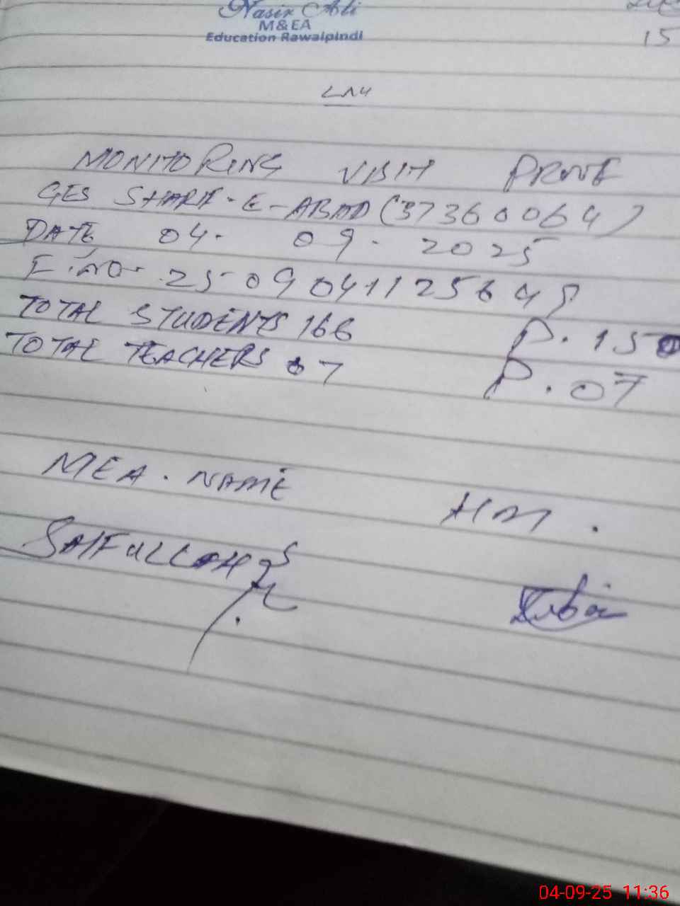 | Attendance Register | Head Teacher | MEA with School | Visit Proof |