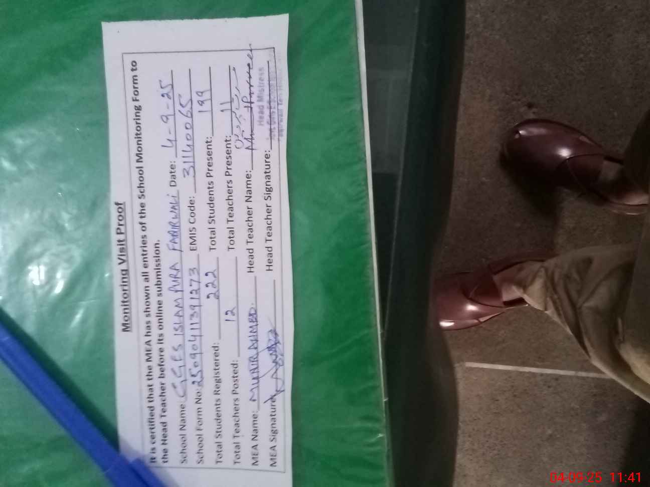 | Attendance Register | Head Teacher | MEA with School | Visit Proof |