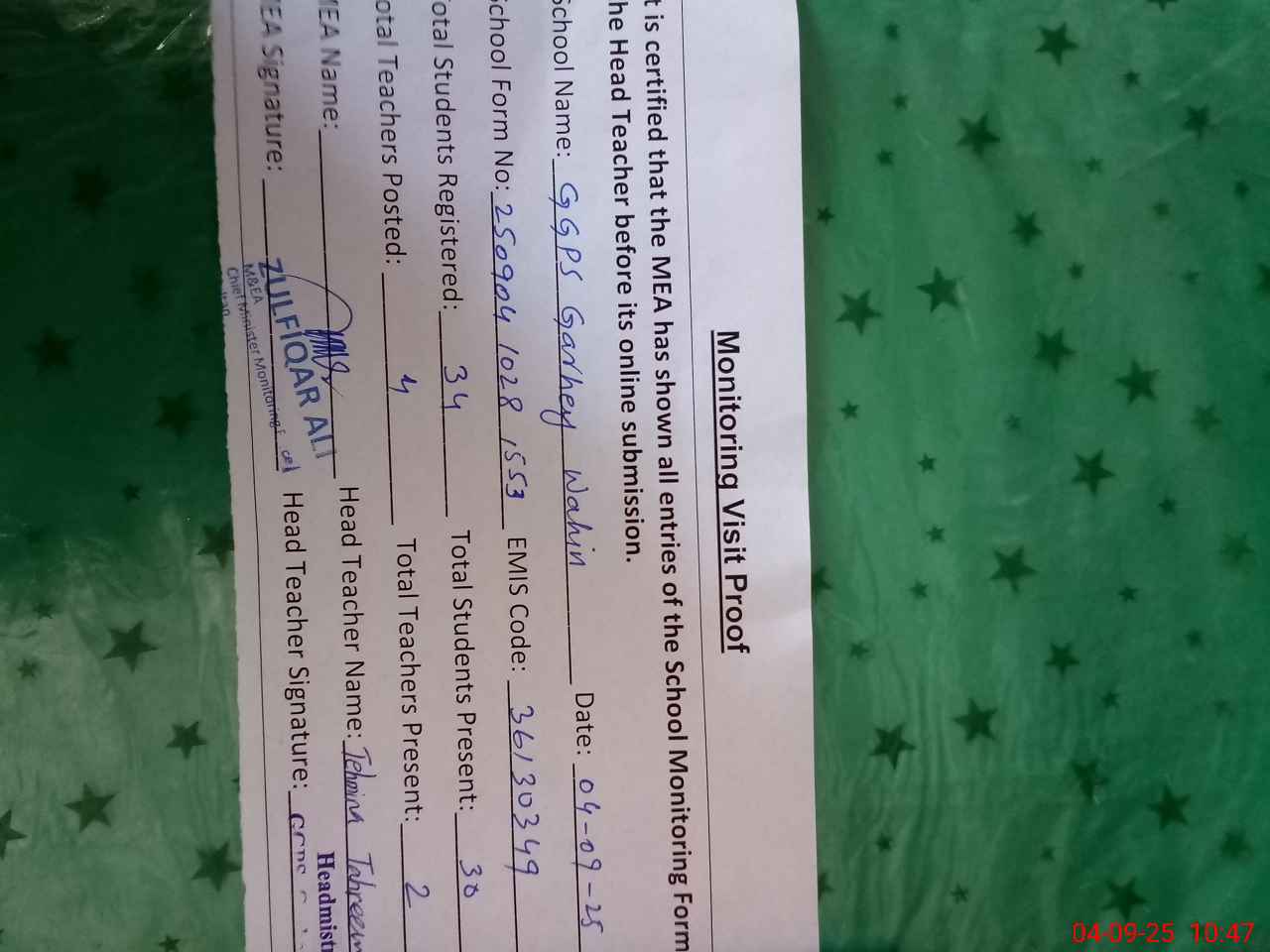 | EMIS Code: 36130349 | Name of School: GGPS GARHEY WAHIN JHOKE VAINCE | |||