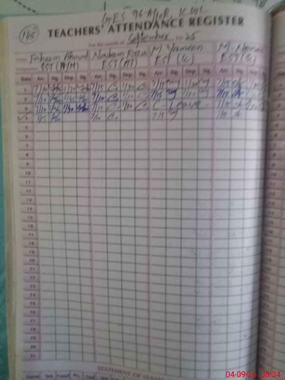 | Monitoring Date: 04-09-2025 | Start Time: 04-09-2025 08:11 AM | End Time: 04-09-2025 09:06 AM | Name of MEA: GH**** AB**** | |