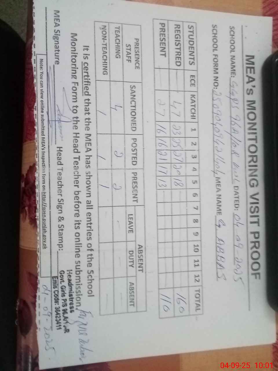 | EMIS Code: 36420411 | Name of School: GGPS 96-A/10-R, KHANEWAL | |||