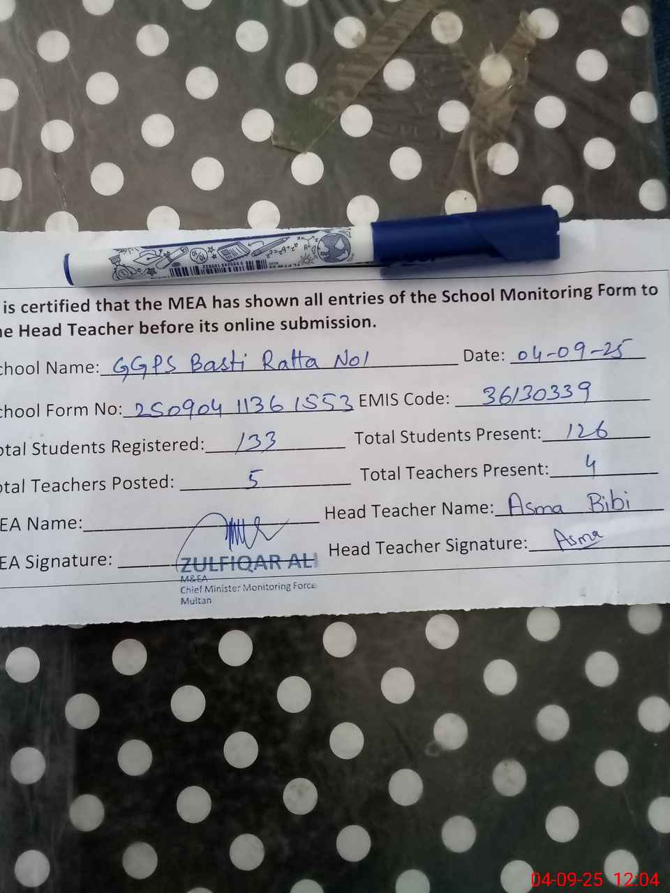 | EMIS Code: 36130339 | Name of School: GGPS BASTI RATTA NO.1 | |||