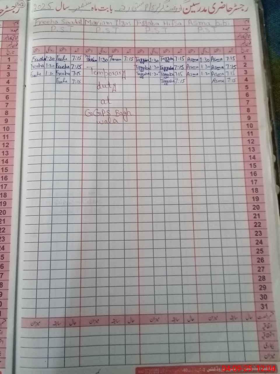 | District: MULTAN | Tehsil: MULTAN SADAR | Markaz: AILAM PUR - FEMALE | Level: Primary | |