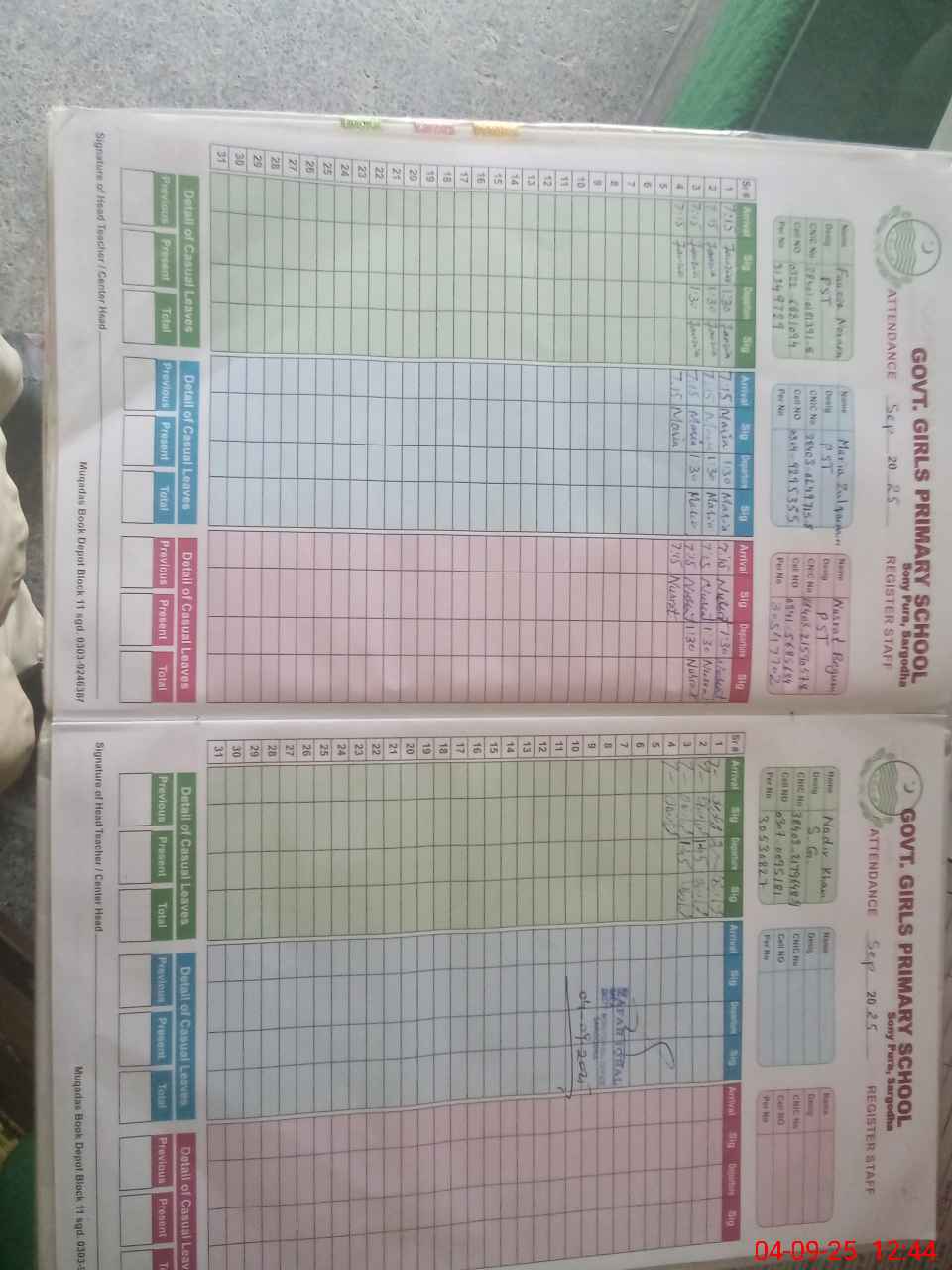 | CNIC | Full Name | Designation | R/C | Absence During Last Calender Month |