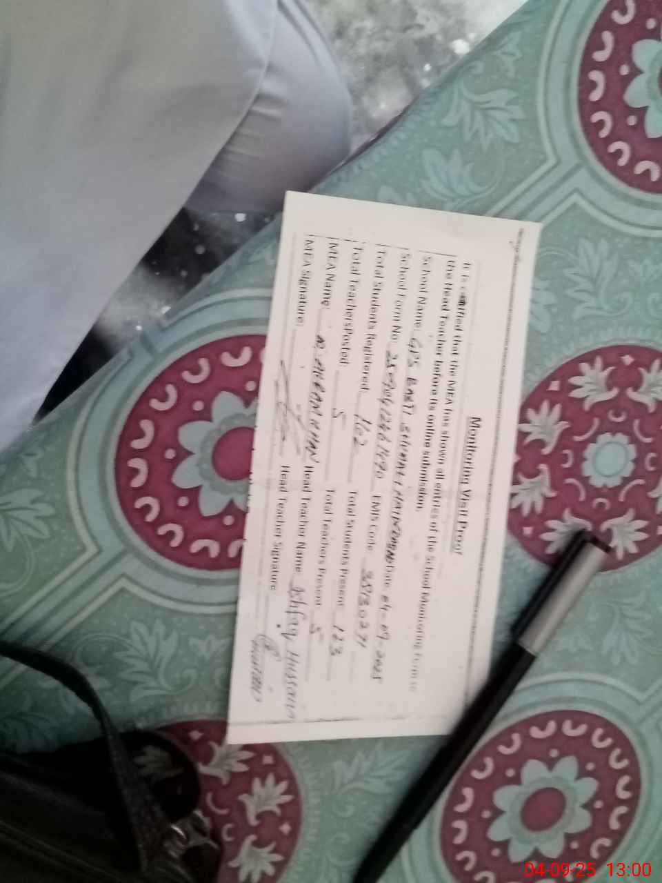 | Name: As**** Hu**** Designation: (School Headmaster's/Headmistress's) PTC/JV Phone/Cell Number: 03**** |