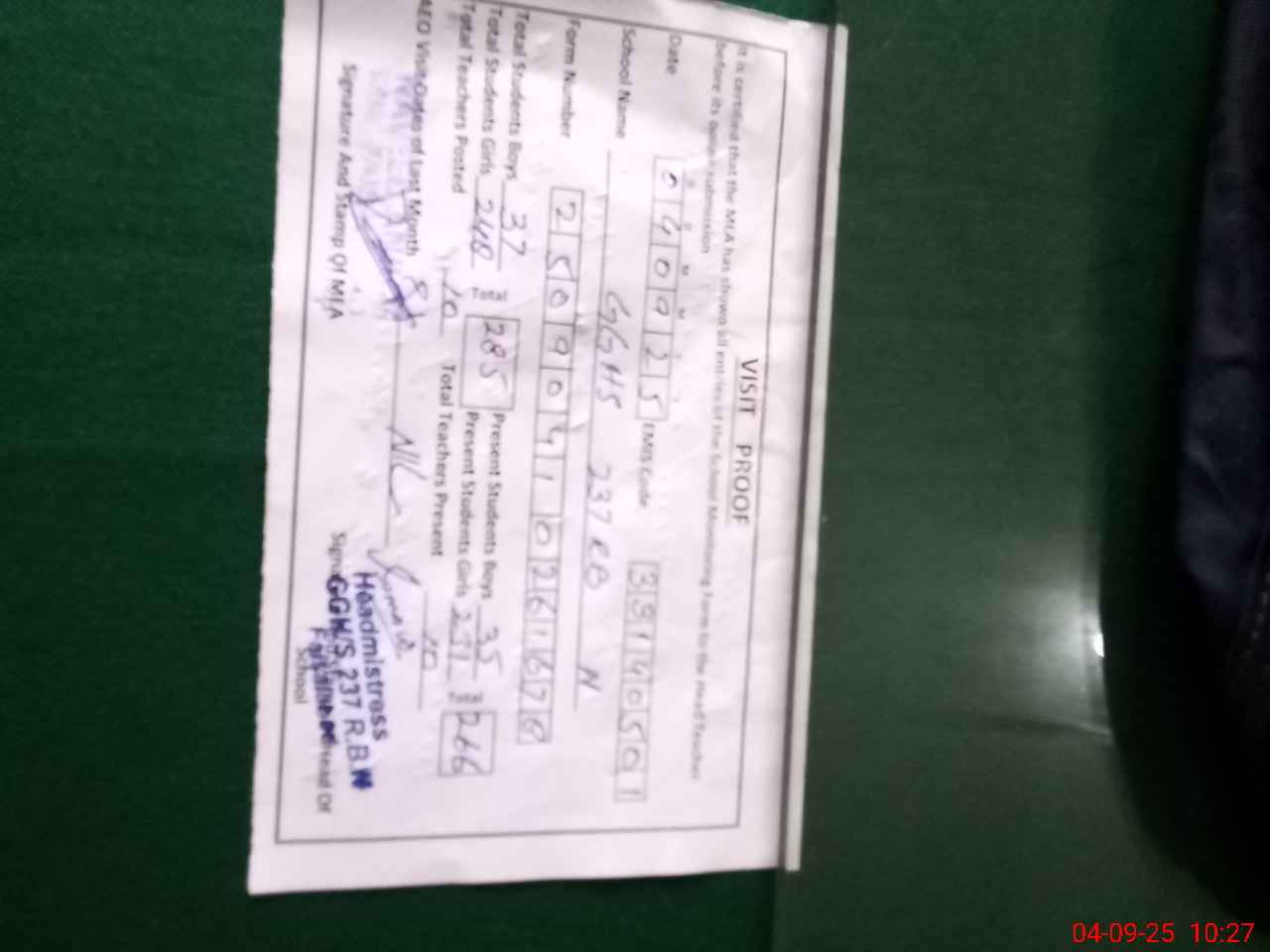 | EMIS Code: 33140501 | Name of School: GGHS CHAK NO 237 RB N | |||