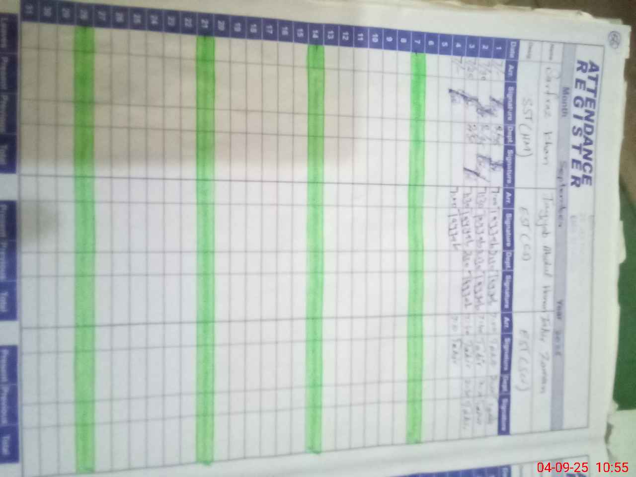 | CNIC | Full Name | Designation | R/C | Absence During Last Calender Month |