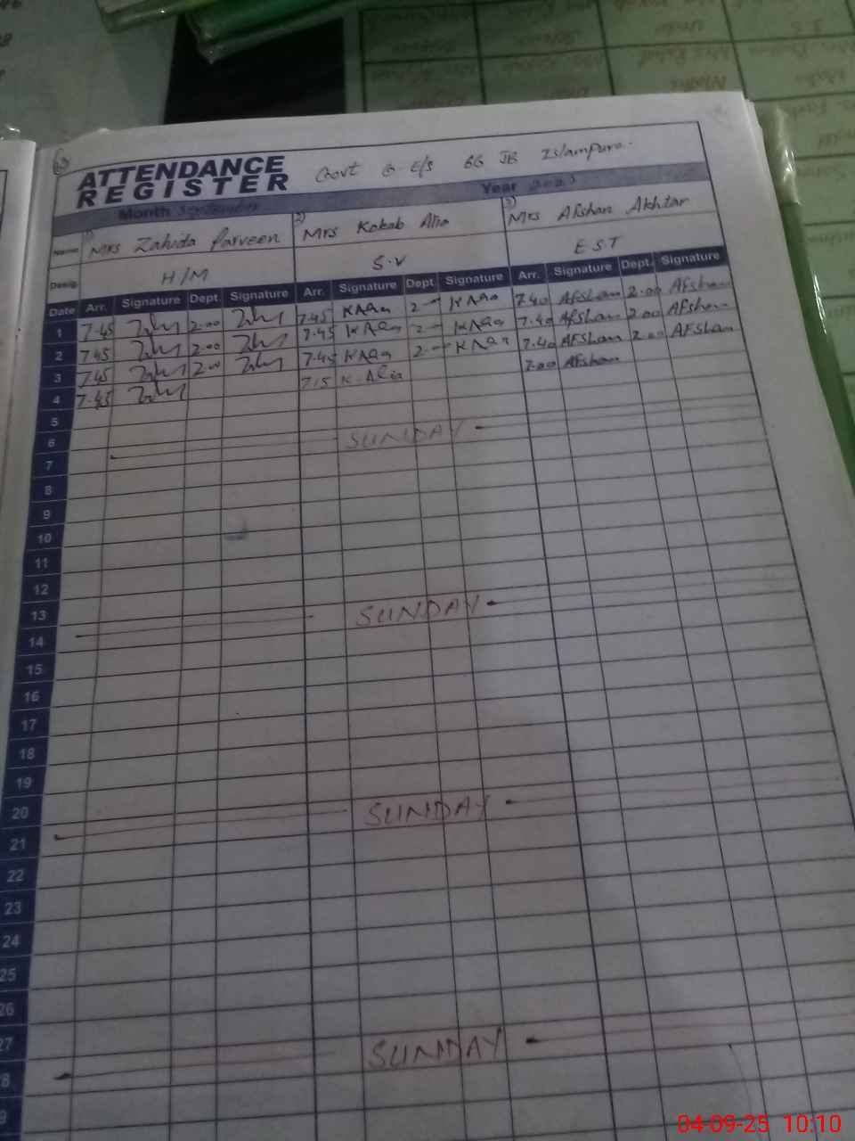 | Name: ZA**** PA**** Designation: (School Headmaster's/Headmistress's) S.S.T.(G) Phone/Cell Number: 03**** |
